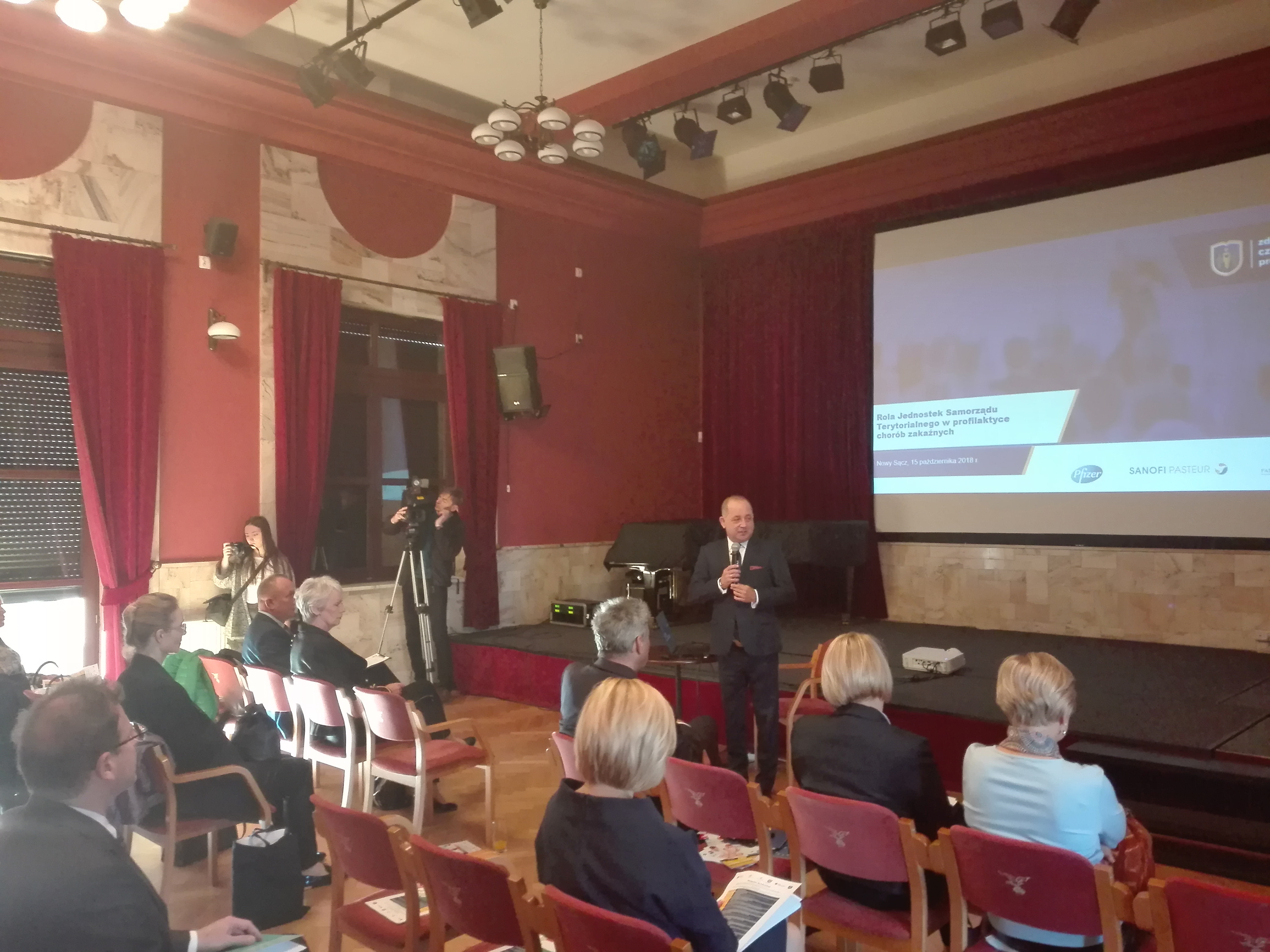 15 października w ramach naszego cyklu, w Nowym Sączu odbyła się konferencja samorządowa p.t:. Rola Jednostek Samorządu Terytorialnego w dostępie do profilaktyki chorób zakaźnych. Spotkanie objęte zostało honorowym patronatem Pani Urszuli Nowogórskiej Przewodniczącej Sejmiku Województwa Małopolskiego, Pana Marka Pławiaka Starosty Nowosądeckiego, Pana Ryszarda Nowaka Prezydenta Miasta Nowego Sącza oraz Pana Mateusza Wójcika, Państwowego Powiatowego Inspektora Sanitarnego w Nowym Sączu.